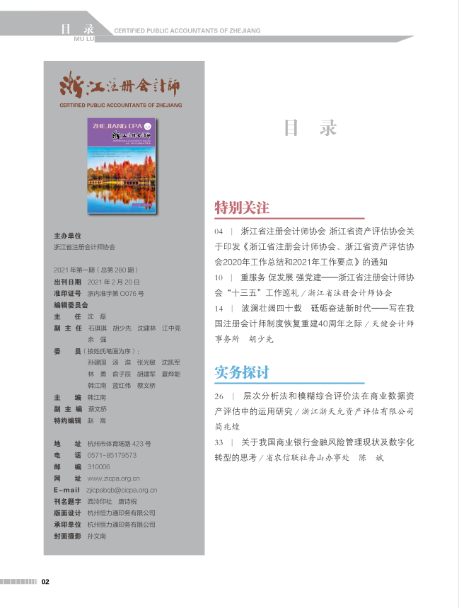 人勤春早添喜报,资产评估师简工在工作实践中及时总结经验,撰写论文《层次分析法和模糊综合评价法在商业数据资产评估的运用研究》,并发表在《浙江省注册会计师》刊物2021年第1期。